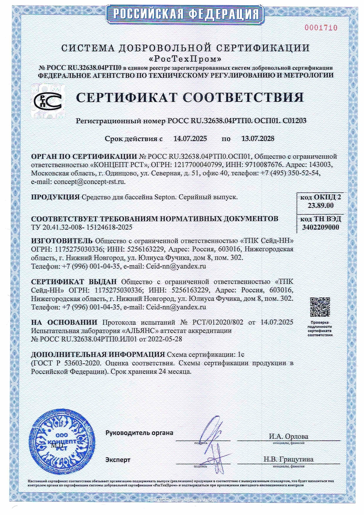 Регистрационный номер № РОСС RU.З2638.04РТП0.OCП01.С01203