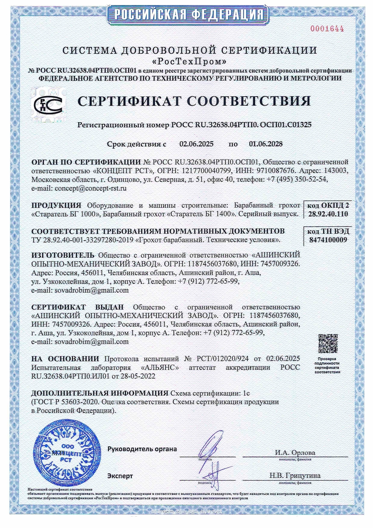 Регистрационный номер № РОСС RU.З2638.04РТП0.OCП01.С01325