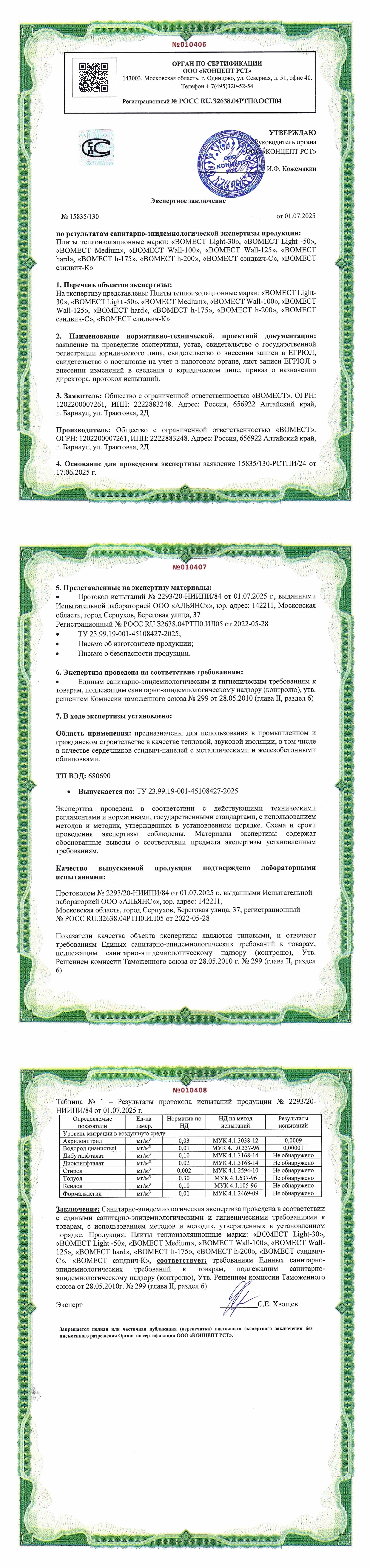 Регистрационный номер № РОСС RU.З2638.04РТП0.OCП04.№15835/130