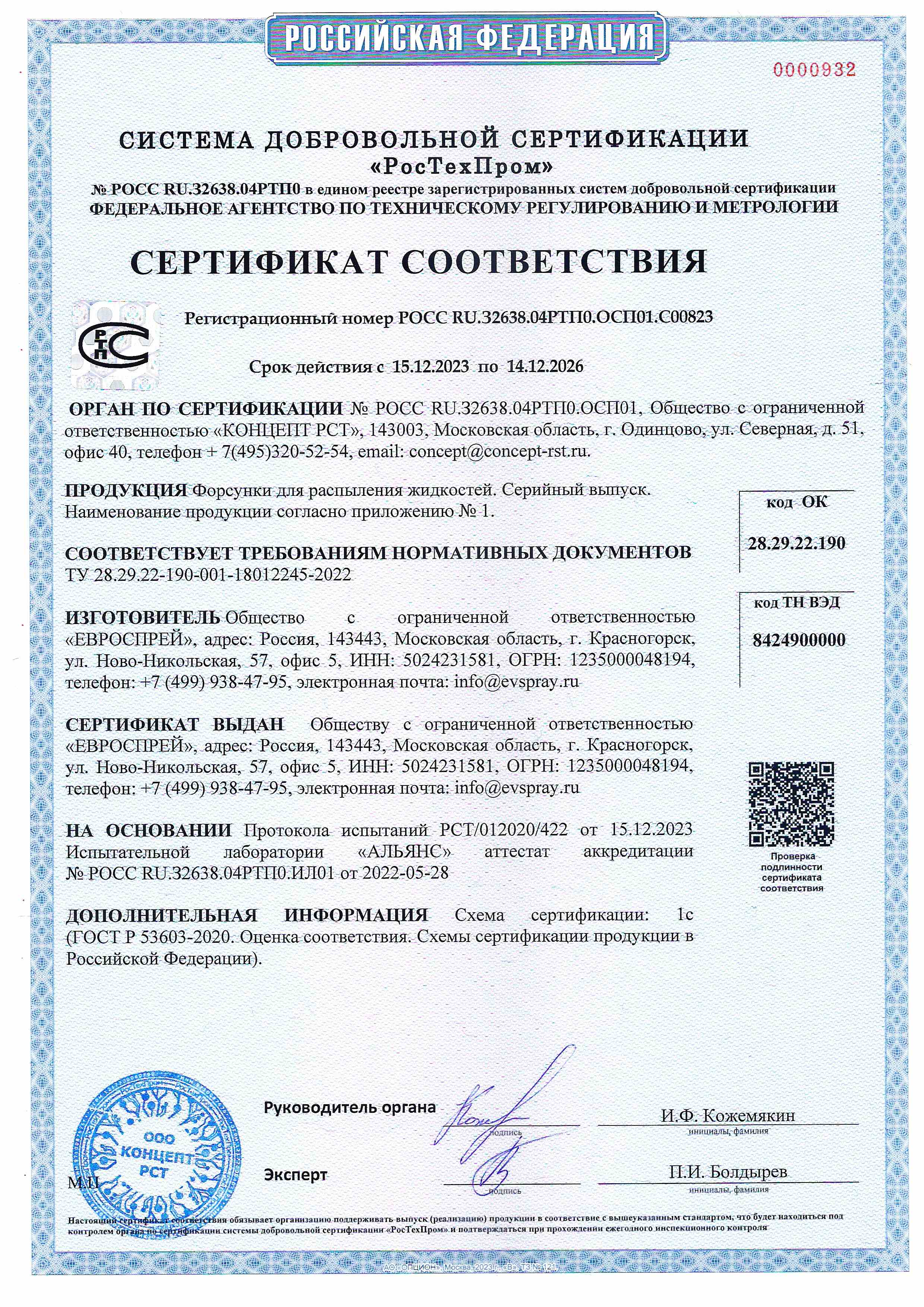 Регистрационный номер № РОСС RU.З2638.04РТП0.OCП01.С00823