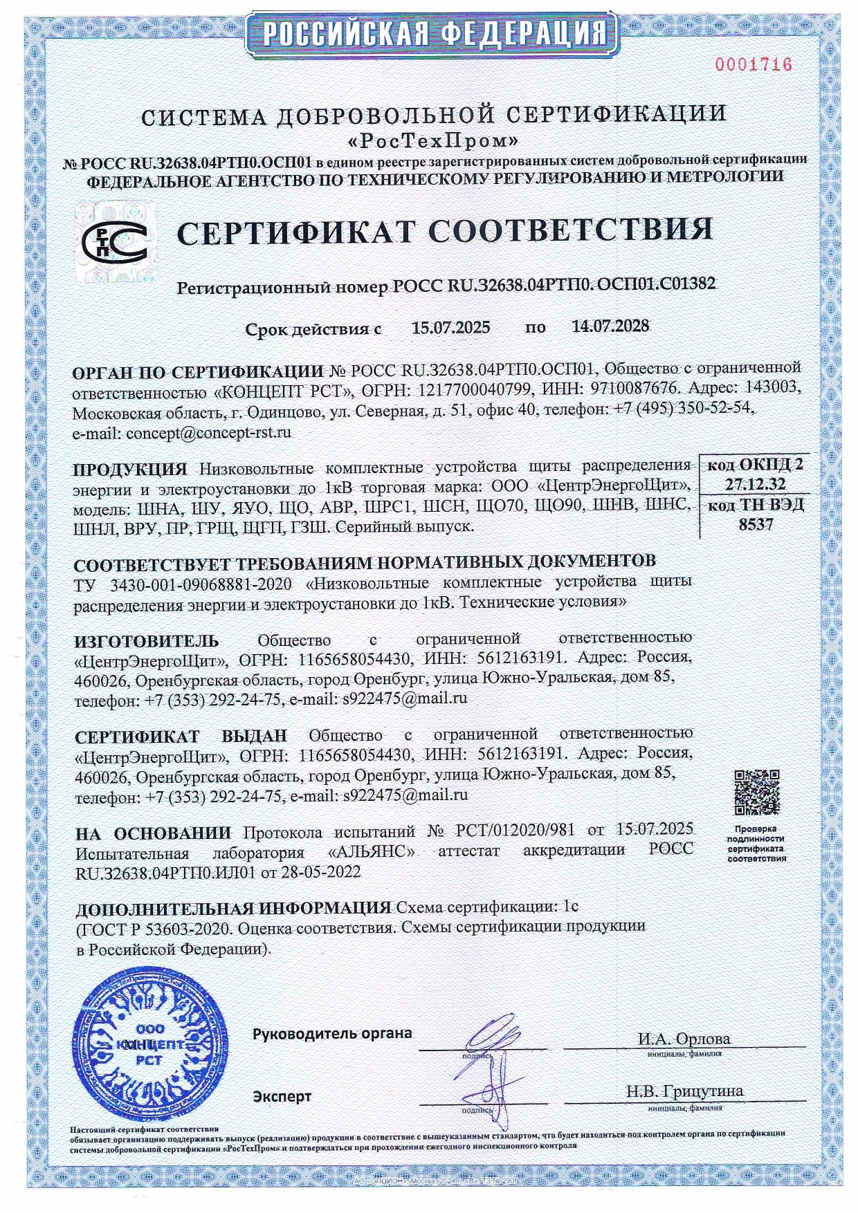 Регистрационный номер № РОСС RU.З2638.04РТП0.OCП01.С01382
