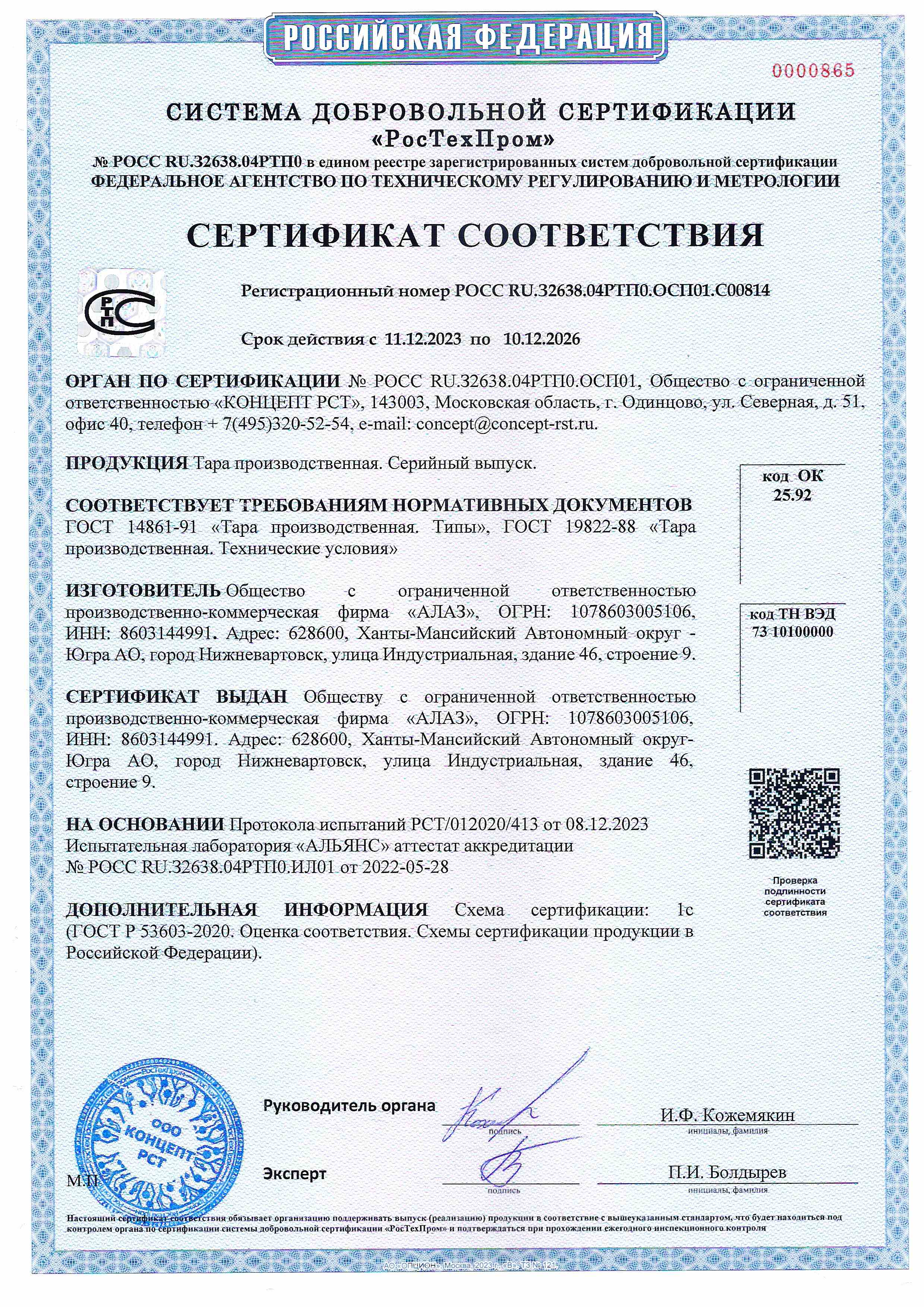 Регистрационный номер № РОСС RU.З2638.04РТП0.OCП01.С00814